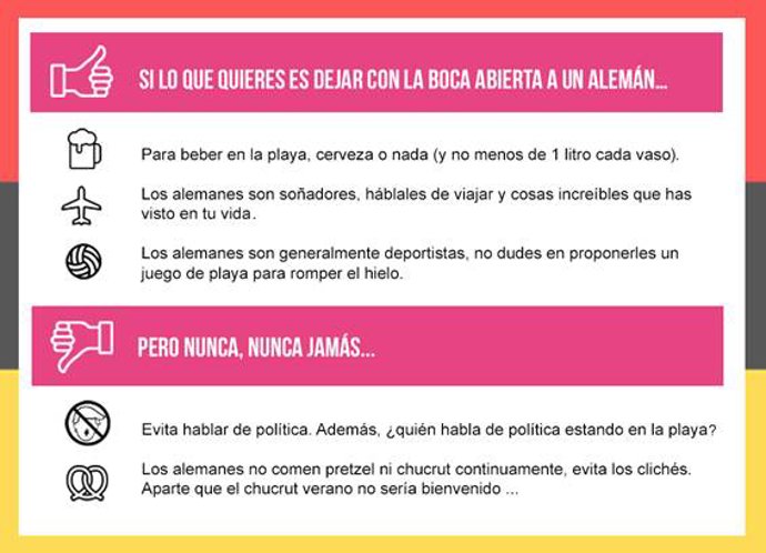Los alemanes son generalmente deportistas, no dudes en proponerles un juego de playa para romper el hielo.