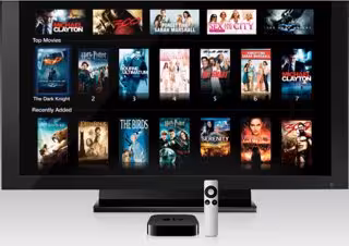 Conectado al televisor, el Apple TV se convierte en un videoclub online que permite al usuario explorar y alquilar películas en definición estándar o en HD para verlas en la pantalla del televisor.