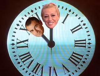 Las luces del plató de 'Sálvame' se apagaron mientras en la pantalla aparecía el ya famoso reloj que preside la Puerta del Sol de Madrid y, junto a la imagen, una frase: "Belén y Jorge, nos dais las campanadas". En ese preciso momento, una corte de fotógrafos se colaron en el plató para recabar testimonio gráfico del histórico momento en el que, como dijo el propio Vázquez: "lo que comenzó como una broma se convirtió en realidad".