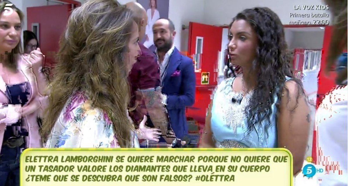 La semana pasada Marco Ferri visitaba el plató de Tele 5 y sacaba los colores de María Patiño y ponía 'nerviosas' a las colaboradoras del programa por lo amable y cariñoso que fue con todas ellas. Su compañera y paisana, Elettra Lamborghini, también ha revolucionado a los colaboradores, pero no por su amabilidad precisamente, sino por todo lo contrario. El programa de Sálvame ha invitado a un tasador de joyas para que analizara los piercings y joyas que la joven lleva en su cuerpo y así poder saber cuales son verdaderos y cuales son falsos.