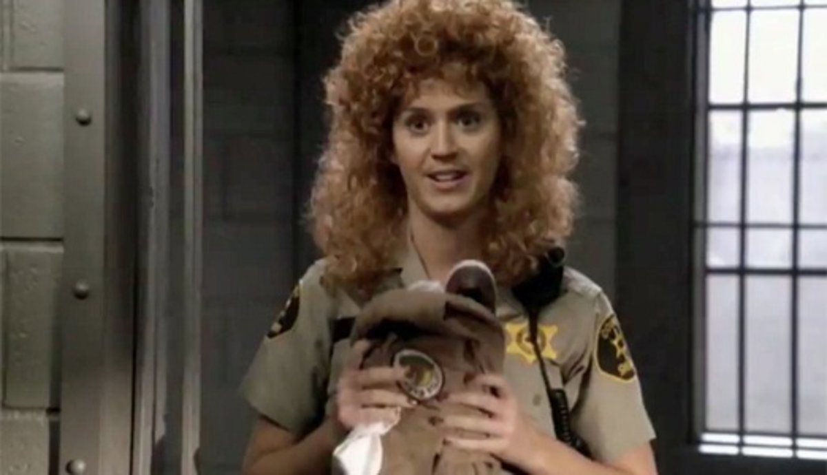 Los guionistas de 'Raising Hope' han tirado de imaginación y han aprovechado que tienen a Katy Perry para un episodio para explotar su faceta más cómica. La actriz se mete en el papel de una funcionaria de prisiones, pero no sólo eso, su estilismo no tiene precio.