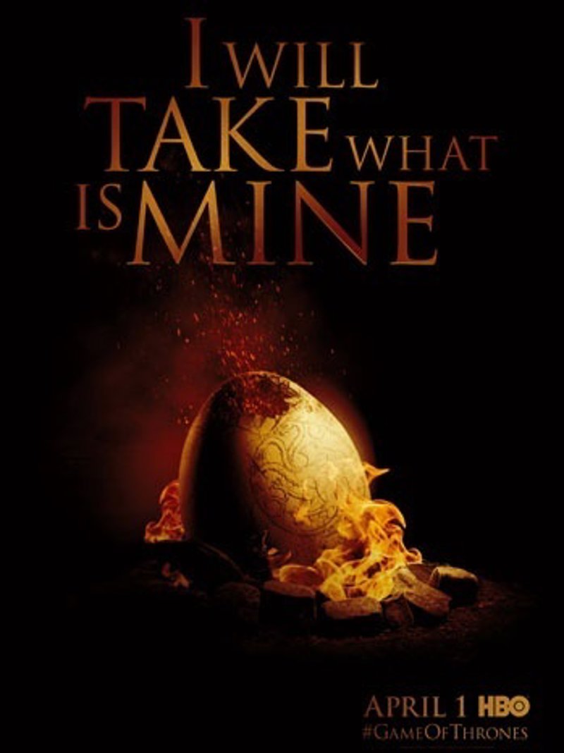 En cuanto al nuevo cartel, es infinitamente menos explícito que el anterior, con la cabeza cortada de Eddard Stark (Sean Bean). Ahora, la cadena ha regalado a los seguidores de Juego de Tronos una imagen en la que se puede leer: "Cogeré lo que es mío". Bajo la frase se puede ver un huevo de dragón sostenido en un nido de fuego.