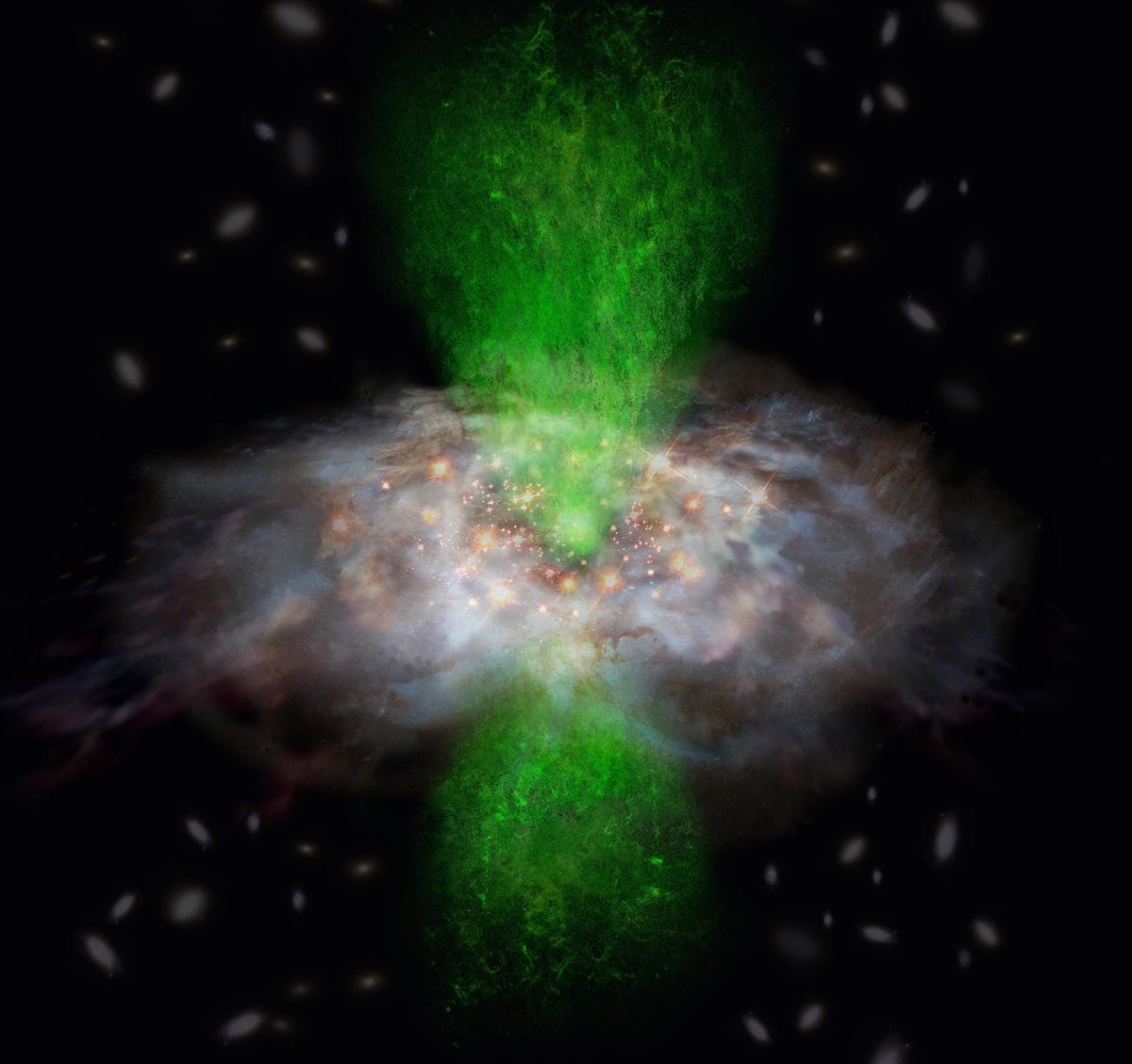 Los astrónomos creen que las galaxias oscurecidas por polvo albergan agujeros negros supermasivos en constante crecimiento en sus núcleos. En particular, WISE1029 (o WISE1029+0501) despide un chorro de gas ionizado por la intensa radiación de su agujero negro supermasivo. WISE1029 es conocida por ser un caso extremo, lo cual ha motivado a los investigadores a estudiar su gas molecular.