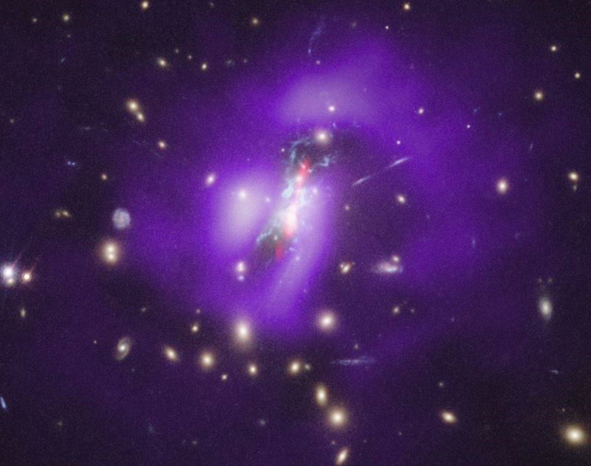 Este gas caliente pierde energía al brillar en los rayos X, lo que debería hacer que se enfríe hasta que pueda formar un gran número de estrellas. Sin embargo, en todos los otros cúmulos de galaxias observados, las explosiones de energía impulsadas por un agujero negro de este tipo evitan que la mayor parte del gas caliente se enfríe, evitando el nacimiento generalizado de estrellas.