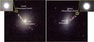 Los autores midieron dos galaxias enanas ultra compactas, llamadas VUCD3 y M59cO, que se encuentran mucho más allá de los brazos espirales de nuestra Vía Láctea, orbitando galaxias masivas en el cúmulo de galaxias de Virgo. Detectaron un agujero negro supermasivo en ambas galaxias; El agujero negro del VUCD3 tiene una masa equivalente a 4,4 millones de soles, representando alrededor del 13 por ciento de la masa total de la galaxia, y el agujero negro del M59cO tiene una masa de 5,8 millones de soles, representando alrededor del 18 por ciento de su masa total.