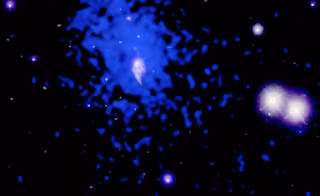 El cúmulo de galaxias (blanco/violeta) y su atmósfera gaseosa caliente (azul) - UNIV. OF BOLOGNA/F.UBERTOSI