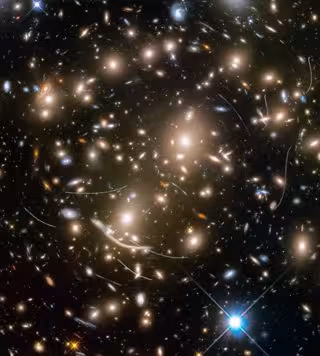 Esta foto de Hubble de un trozo de cielo al azar es parte de una encuesta llamada Frontier Fields. La colorida imagen contiene miles de galaxias, incluidas enormes elípticas amarillentas y majestuosas espirales azules. Las galaxias azules fragmentarias, mucho más pequeñas, se dispersan por todo el campo. Los objetos más rojos son muy probablemente las galaxias más lejanas, cuya luz se ha estirado en la parte roja del espectro por la expansión del espacio.
