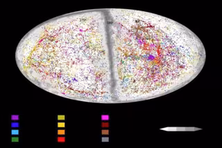 Mapa de cielo completo que muestra las 56 000 galaxias de Cosmicflows-4 con medidas de distancia. - UNIVERSITY OF HAWAII AT MANOA