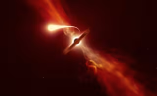 Esta Ilustración Muestra Una Estrella (En Primer Plano) Experimentando Una Espaguetificación Cuando Es Succionada Por Un Agujero Negro Supermasivo (En El Fondo) Durante Un "Evento De Interrupción De Marea". - ESO/M. KORNMESSER