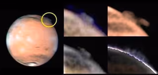 En marzo y abril de 2012, los astrónomos aficionados de todo el mundo equipados con sus telescopios de alta resolución y cámaras aprovecharon que Marte se movió más cerca de la Tierra para obtener imágenes detalladas del planeta. Consiguieron una sorpresa cuando vieron la presencia de un alto penacho en el borde del disco emergente durante el amanecer marciano.