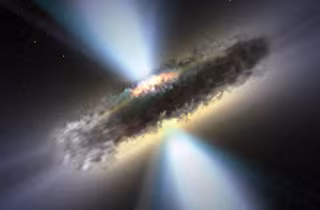Según el profesor David Alexander, de la Universidad de Durham y coautor del estudio, "se trata de una fase de la evolución turbulenta y desordenada, en la que el gas y las estrellas colisionan y se agrupan en el centro de la galaxia. La lucha por el alimento cósmico envuelve al cuásar 'bebé' en su capullo de polvo".