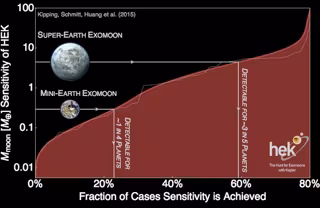 Ahora, por primera vez, la especulación da paso a los datos gracias al programa Hunt for Exomoons with Kepler (HEK). En un estudio publicado en The Astrophysical Journal, investigadores dirigidos por David Kipping, de la Universidad de Harvard, concluyen que la tecnología actual es definitivamente sensible para detectar exolunas semejantes a las que se encuentran en el sistema solar e incluso lunas potencialmente habitables.