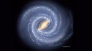 La Vía Láctea, la galaxia en que vivimos, tiene una forma espiral barrada, con sinuosos brazos de estrellas, gas y polvo que surgen a partir de una barra central. Vista desde el lateral, la galaxia parece relativamente plana, con la mayoría del material en el disco y las regiones centrales.