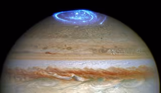 El espacio que rodea planetas magnetizados como Júpiter está lleno de plasma, un estado de materia sobrecalentado donde los átomos se descomponen en electrones e iones. Estas partículas se aceleran hacia la atmósfera del planeta, provocando que los gases se iluminen como una aurora. En la Tierra, esto es visible como las conocidas luces verdes y azules. Sin embargo, la aurora de Júpiter suele ser invisible a simple vista y solo puede observarse con instrumentos ultravioleta e infrarrojos.