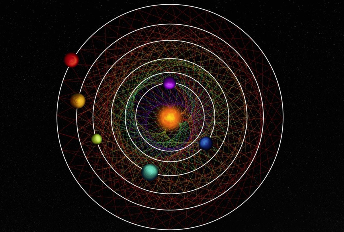 Los seis planetas del sistema HD 110067 crean juntos un patrón geométrico fascinante debido a su cadena de resonancia. - THIBAUT ROGER (NCCR PLANETS).