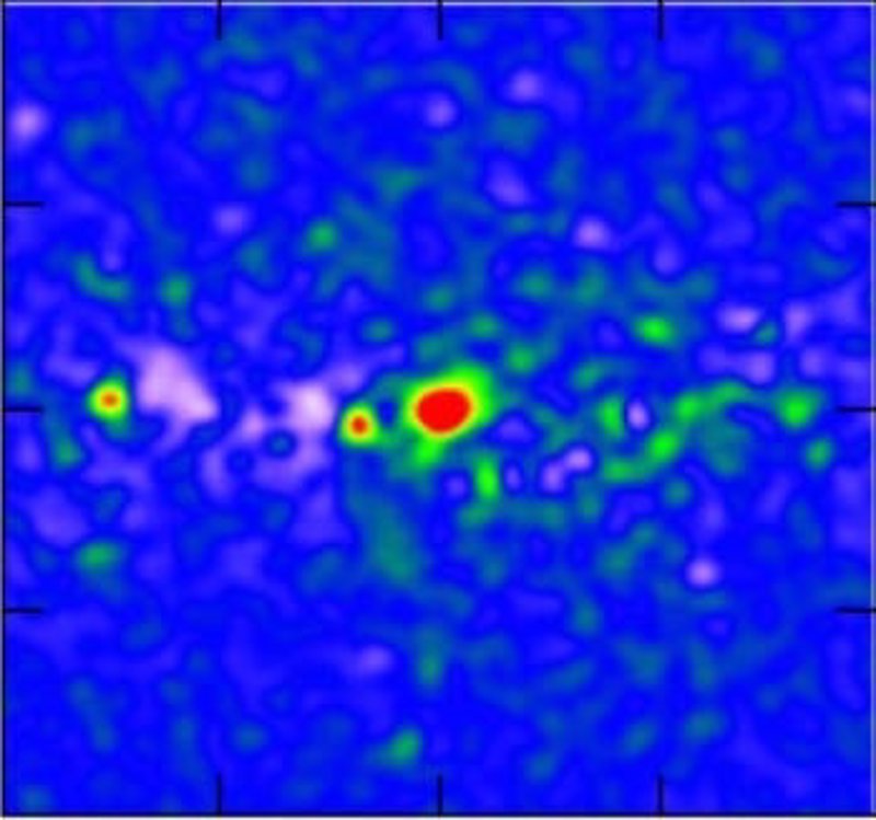 Es en este punto donde interviene el estudio del CfA dirigido por Doug Finkbeiner, centrado en la distribución espacial de la emisión de rayos gamma en la Vía Láctea, y en particular, en la emisión de rayos gamma procedente de la región centro galáctico. Esta región está a la vez relativamente cerca y tiene una densidad alta de materia (y nominalmente una alta densidad de materia oscura también). Si se produce la aniquilación de materia oscura, se esperaría que la ubicación fuese brillante en rayos gamma. De hecho, una gran firma de rayos gamma se ha visto desde el área que se extiende a lo largo de cientos de años luz (hay también una emisión más débil que se extiende hacia fuera desde hace miles de años luz).