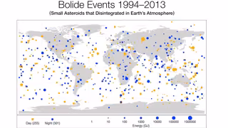 La NASA ha publicado un mapa que revela que bólidos y pequeños meteoritos con frecuencia entran y se desintegran en la atmósfera de la Tierra, con una distribución al azar en todo el mundo.