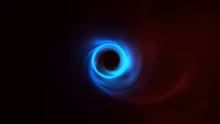 Simulación del agujero negro M87 que muestra el movimiento del plasma mientras gira alrededor del agujero negro. El anillo delgado y brillante que se puede ver en azul es el borde de lo que llamamos la sombra del agujero negro. - L. MEDEIROS; C. CHAN; D. PSALTIS; F. ÖZEL; UNIVERS