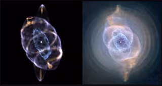Una Comparación Lado A Lado Del Modelo Tridimensional De La Nebulosa Ojo De Gato Creada Por Clairmont Y La Nebulosa Ojo De Gato Fotografiada Por El Telescopio Espacial Hubble. - RYAN CLAIRMONT /NASA, ESA, HEIC,