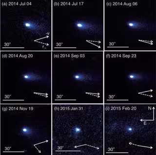 "Las tasas de producción de polvo de todo el paso por el perihelio de 2014 eran como cinco órdenes de magnitud menores que el valor máximo durante el estallido de 2007", escribieron los investigadores en el artículo.