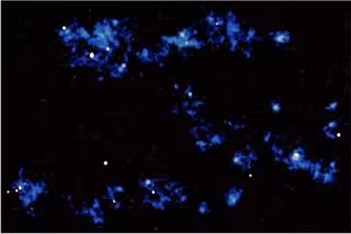Con base en observaciones directas, descubrieron que, de acuerdo con las predicciones del modelo de formación de galaxias de materia oscura fría, los filamentos son extensos, se extienden a más de 1 millón de parsecs (un parsec es poco más de tres años luz) y están proporcionando combustible para la formación intensa de estrellas y el crecimiento de agujeros negros súper masivos dentro del proto-cluster.