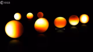 Los modos de oscilación no radiales hacen que la superficie de una estrella se mueva mientras gira, como se muestra en la animación. Los parches oscuros son ligeramente más fríos que los parches brillantes, lo que da lugar a cambios periódicos en el brillo de la estrella. La frecuencia de las estrellas giratorias y pulsantes se incrementó 8,6 millones de veces para cambiarlas al rango audible de los humanos.