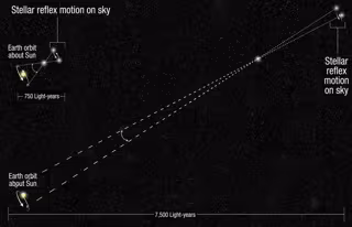 El paralaje, una técnica trigonométrica, es el método más fiable para la toma de mediciones de distancias astronómicas, y una antigua práctica empleada por los técnicos agrícolas en la Tierra. El diámetro de la órbita de la Tierra es la base de un triángulo y la estrella es el vértice donde los lados del triángulo se encuentran. Las longitudes de los lados se calculan midiendo con precisión los tres ángulos del triángulo resultante.