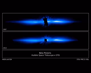 En 1984, Beta Pictoris fue la primera estrella descubierta con un disco brillante de polvo alrededor dispersando luz y escombros. Desde entonces Beta Pictoris ha sido objeto de escrutinio intensivo con Hubble y con los telescopios terrestres. Observaciones espectroscópicas del Hubble en 1991 encontraron evidencias de cometas extrasolares que con frecuencia caen en la estrella.