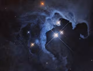 Alrededor de las estrellas, una nube de gas y polvo brilla con su luz reflejada. Las nebulosas de reflexión no emiten luz visible propia, sino que brillan cuando la luz de las estrellas cercanas rebota en el gas y el polvo, como la niebla iluminada por el brillo de los faros de un automóvil.