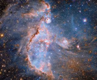 Los habitantes de este cúmulo son escultores estelares, que tallan una burbuja en la nebulosa. Las estrellas calientes y masivas de NGC 346 producen una intensa radiación y fuertes vientos estelares que azotan el gas ondulante de su lugar de nacimiento y comienzan a dispersar la nebulosa circundante.
