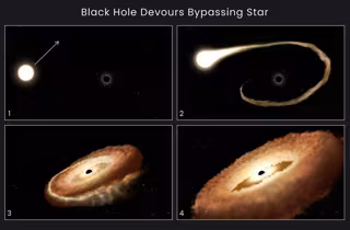 Los agujeros negros son recolectores, no cazadores. Yacen al acecho hasta que pasa una estrella desventurada. Cuando la estrella se acerca lo suficiente, el agarre gravitatorio del agujero negro lo destroza violentamente y devora sus gases mientras expulsa una intensa radiación. Esto se denomina 'evento de interrupción de marea'.