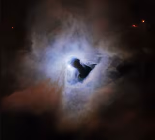 Al igual que la niebla que se enrosca alrededor de una farola, las nebulosas de reflexión como NGC 1999 brillan con la luz de una fuente incrustada. En el caso de NGC 1999, esta fuente es la estrella recién nacida V380 Orionis antes mencionada, que es visible en el centro de esta imagen. Sin embargo, el aspecto más notable de la apariencia de NGC 1999 es el llamativo agujero en su centro, que se asemeja a un ojo de cerradura negro como la tinta de proporciones cósmicas.