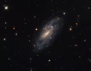 La galaxia espiral UGC 11860 parece flotar serenamente contra un campo de galaxias de fondo en esta imagen del Telescopio Espacial Hubble de NASA/ESA.