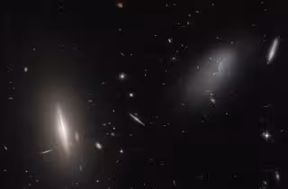 LEDA 48062 es la galaxia tenue, dispersa y amorfa de la parte derecha de la imagen, y está acompañada por una vecina más definida a la izquierda: la gran galaxia lenticular UGC 8603, informa la NASA.