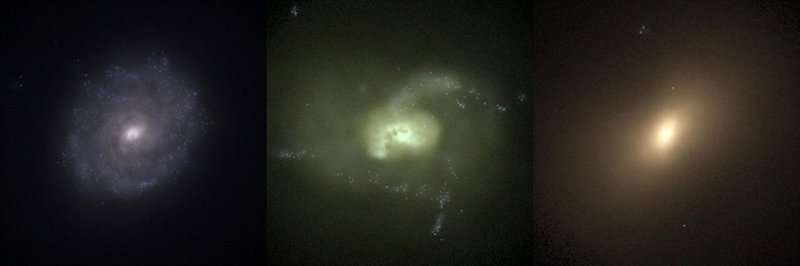 Trayford añadió: "En un reciente estudio, seguidmos galaxias simuladas a medida que cambiaron de color, e investigamos qué procesos producían el cambio".
