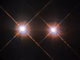 Alpha Centauri A (izquierda) y Alpha Centauri B fotografiadas por el Telescopio Espacial Hubble. Ubicado en la constelación de Centaurus (El Centauro), a una distancia de 4,3 años luz, el par de estrellas orbita un centro de gravedad común cada 80 años - NASA/ESA/HUBBLE