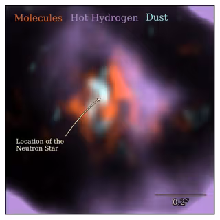 El autor principal del estudio, Phil Cigan, de la Facultad de Física y Astronomía de la Universidad de Cardiff, dijo en un comunicado: "Por primera vez podemos decir que hay una estrella de neutrones dentro de esta nube dentro del remanente de supernova. Su luz ha sido velada por una nube de polvo muy espesa, que bloquea la luz directa de la estrella de neutrones en muchas longitudes de onda como la niebla que enmascara un foco de luz".