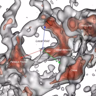 Ahora, Tully y su equipo han medido los movimientos de 18.000 galaxias en el compendio de distancias de galaxias de Cosmicflows-3, construyendo un mapa cosmográfico que resalta el límite entre la colección de materia y la ausencia de materia que define el borde del Vacío Local. Utilizaron la misma técnica en 2014 para identificar el alcance total de nuestro supercúmulo doméstico de más de cien mil galaxias, dándole el nombre de Laniakea, que significa "cielo inmenso" en hawaiano.