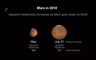 MADRID, 30 Jul. (EUROPA PRESS) - Marte registró este martes, 31 de julio, su máximo acercamiento a la Tierra desde 2003. Concretamente, la distancia se redujo a 57,56 millones de kilómetros hacia las 11.00 GMT, según la NASA. El planeta está en oposición al sol el 27 de julio, lo que significa que estará frente al sol en el cielo de la Tierra, solo 51 días antes de que pase a través del perihelio, punto más cercano relativo al sol en su órbita. Este 31 de julio, el diámetro aparente del disco del planeta ha sido tan grande como 24,3 segundos de arco, casi el mayor que puede obtener, 25,1 segundos de arco. Asimismo, según la NASA, el Planeta Rojo resplandeció a una magnitud de -2.7, dos veces más brillante que Júpiter, pero más tenue que Venus. Mirando a través de un telescopio con un ocular que con 75 aumentos, el disco de Marte apareció tan grande como el disco de la luna a simple vista. Sin embargo, Marte estará más al sur cuando esté en su mejor momento; estará en la constelación zodiacal de Capricornio, con una declinación de -25.8 grados. Como tal, los observadores en las latitudes del norte nunca verán el planeta muy alto en el cielo, por lo que la turbulencia atmosférica afectó a la vista más de lo normal. Por el contrario, a los observadores de Sudamérica, Sudáfrica y Australia se les presentó una oportunidad de visualización excepcional, ya que el planeta pasó casi directamente por encima. El disco telescópico marciano apareció con al menos 14 segundos de arco de diámetro durante casi cinco meses, desde el 24 de mayo hasta el 13 de octubre, más de lo que ha sido en un intervalo tan prolongado durante más de una década.