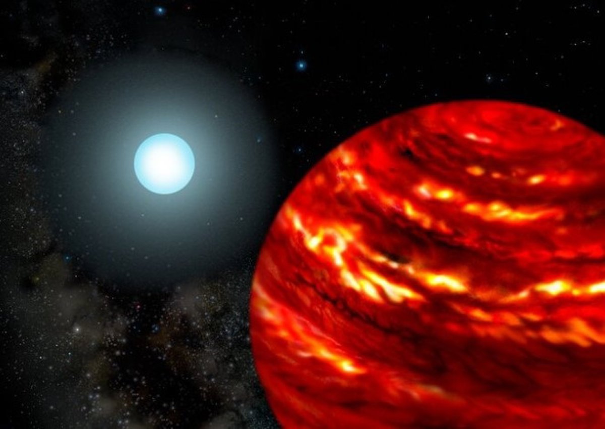 Interpretación artística de un posible sistema exoplanetario con un planeta gaseoso gigante orbitando cerca de su estrella progenitora la cual es más masiva que nuestro Sol. - GEMINI OBSERVATORY/AURA/LYNETTE COOK