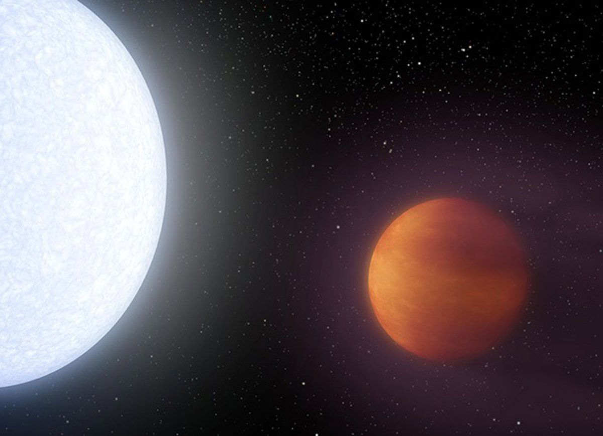 KELT-9 es una estrella ubicada en la constelación de Cygnus. Su exoplaneta KELT-9 b ejemplifica el más extremo de los llamados Júpiter calientes, ya que orbita muy cerca de su estrella, que es casi el doble de caliente que el Sol. Por lo tanto, su atmósfera alcanza temperaturas de alrededor de 4.000 grados Celsius. Con tal calor, todos los elementos se vaporizan casi por completo y las moléculas se dividen en sus átomos constituyentes, como ocurre en las capas externas de las estrellas. Esto significa que la atmósfera no contiene nubes ni aerosoles y el cielo está despejado, en su mayoría transparente a la luz de su estrella.