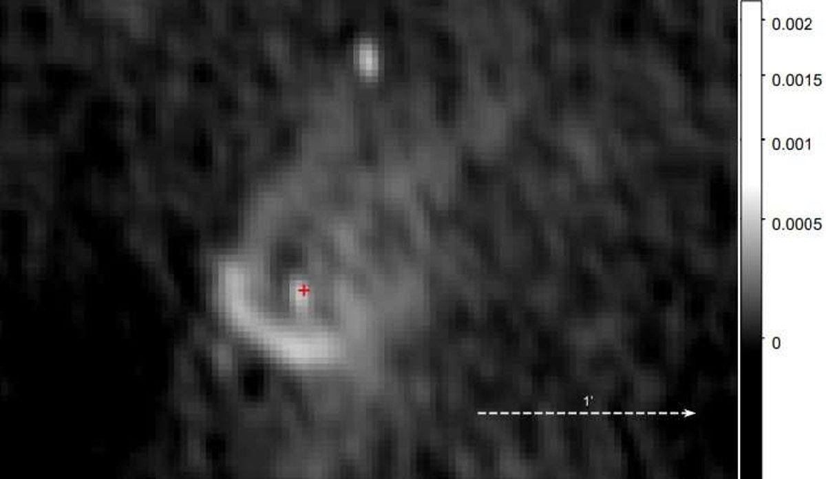 Los autores del trabajo suponen que la morfología de la emisión recuerda a una nebulosa de arco de choque.