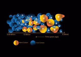 El estudio muestra que la cantidad de carbono caliente se multiplicó por cinco de repente en un periodo de sólo 300 millones de años, un abrir y cerrar de ojos en escalas de tiempo astronómicas. - ASTRO 3D