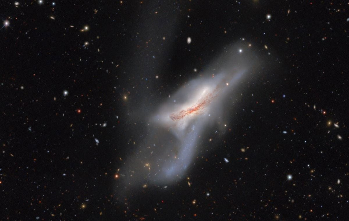 NGC 520 es una de las galaxias más grandes y brillantes del Atlas de galaxias de Siena. Está formado por dos galaxias de disco que eventualmente se fusionarán para formar un sistema masivo. - NSF/AURA/NOIRLAB