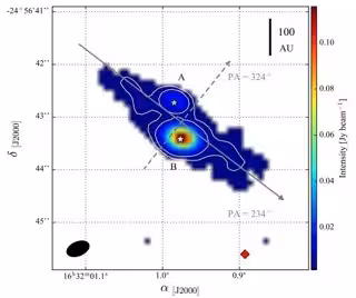 "El propósito de este trabajo es presentar la detección de un disco circumbinario alrededor del sistema Oph-IRS67 y analizar su estructura química y física. (...) La emisión continua concuerda con la posición de Oph-IRS67 A y B, y revela la presencia de un disco circumbinario alrededor de las dos fuentes ", escriben los investigadores en el documento, publicado en arXiv.