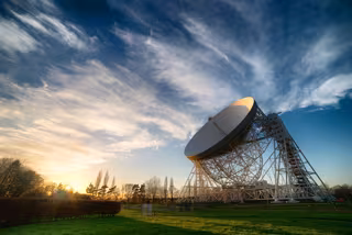 Jodrell Bank, propiedad de la Universidad de Manchester, es famoso por ser el hogar del Telescopio Lovell, el tercer radiotelescopio orientable más grande del mundo. Terminado en 1957, el plato fue el más grande de su tipo en todo el mundo hasta 1973 y fue el catalizador para la construcción de muchas otras antenas parabólicas a gran escala.