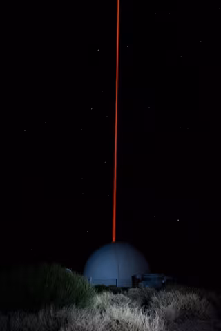 Las "estrellas guía" se originan lanzando un potente rayo láser al cielo. El rayo crea un punto brillante debido a que excita átomos de sodio presentes en la mesosfera --a unos 90 km de altura--. La luz que vuelve de estas referencias artificiales puede ser utilizada por la Óptica Adaptativa para medir el efecto de la turbulencia atmosférica, corregirlo y lograr imágenes astronómicas casi tan nítidas como si el telescopio estuviera en el espacio.