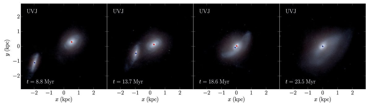 Un equipo de investigación internacional con participación de la Universidad de Zurich ahora ha calculado que esto ocurre alrededor de 10 millones de años después de que las dos galaxias se fusionern, mucho más rápido de lo que se suponía.