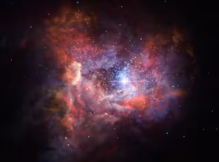 El polvo cósmico se compone, principalmente, de silicio, carbono y aluminio en granos diminutos de tamaños de una millonésima de centímetro. Los elementos químicos de estos granos se forjan dentro de las estrellas y son esparcidos por el cosmos cuando las estrellas mueren (en el caso de explosiones de supernova de forma espectacular, el destino final de las estrellas masivas de breve duración). Hoy en día, este polvo es abundante y es un elemento clave en la formación de estrellas, planetas y moléculas complejas; pero en el universo temprano, antes de que murieran las primeras generaciones de estrellas, era escaso.