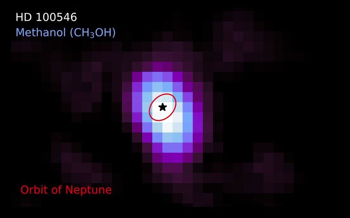 Por primera vez, astrónomos liderados por la Universidad de Leiden han descubierto metanol en la parte cálida de un disco de formación de planetas.